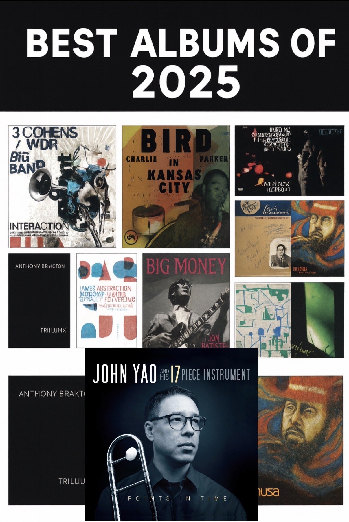 “Points in Time by John Yao and His 17-Piece Instrument is more than a hard-swinging recording from an ace large ensemble led by a forward-thinking composer-arranger (and distinguished trombone voice). It’s also a commemoration of tandem anniversaries currently at the forefront of Yao’s memory: his arrival on the New York jazz scene 20 years ago, and the 10 years that have passed since he released his first big band album, the acclaimed Flip-Flop. Inspired by these two milestones, the album is informed by a number of professional and deeply personal experiences that have marked his two decades as a bandleader and sideman in the Big Apple. The music reveals the major strides Yao and his collaborators have taken since Flip-Flop made the JY-17 a widely known entity in the lineage of the iconic Vanguard Jazz Orchestra. . . .” — Ed Enright, DownBeat